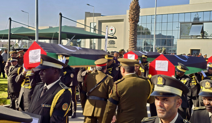 Libya askeri heyetinin naaşlarının başkent Trablus'a ulaşmasının ardından Savunma Bakanlığında askeri tören düzenlendi.