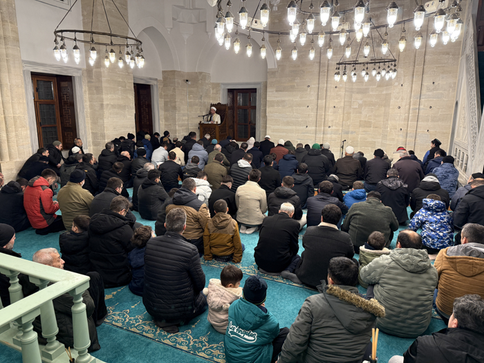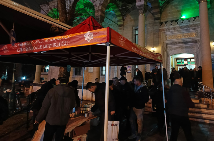 Yatsı ezanının ardından vatandaşlar namaz kıldı. Kütahya Vakıflar Bölge Müdürlüğünce cami çıkışı vatandaşlara salep ikram edildi.