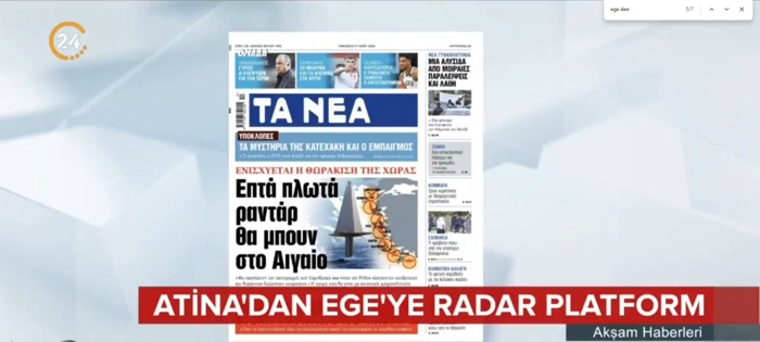 Ancak Yunan Basını, Atina'nın Türkiye'nin hoşuna gitmeyecek bir plan hazırlığında olduğunu belirtti. Ege Denizi'ne 7 adet yüzer radar platformu kurmaya hazırlandığı ifade edildi.