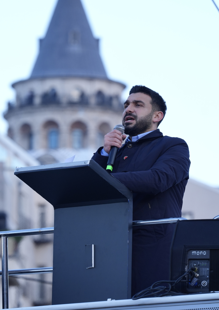 Yalova'da üç gün önce DEAŞ terör örgütüne yönelik operasyonda şehit olan polisler İlker Pehlivan, Turgut Külünk ve Yasin Koçyiğit'in de isimlerini anan Beşinci, "Hepsi burada. Onlar şehit, bizler şahit. Şahit misin Galata?" diye seslendi.