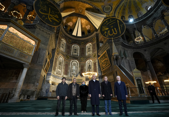 Kültür ve Turizm Bakanı Mehmet Nuri Ersoy, Ayasofya-i Kebir Cami-i Şerifi ve Sultanahmet Camii'nde yürütülen restorasyon çalışmaları ilgili basın açıklaması yaptı. Ayasofya-i Kebir Cami-i Şerifi'nde düzenlenen açıklamada Bakan Ersoy'a İstanbul Valisi Davut Gül, Ayasofya Bilim Kurulu Üyeleri Prof. Dr. Ahmet Güleç, Prof. Dr. Hasan Fırat Diker, Prof. Dr. Asnû Bilban Yalçın ve Doç. Dr. Mehmet Selim Ökten eşlik etti.