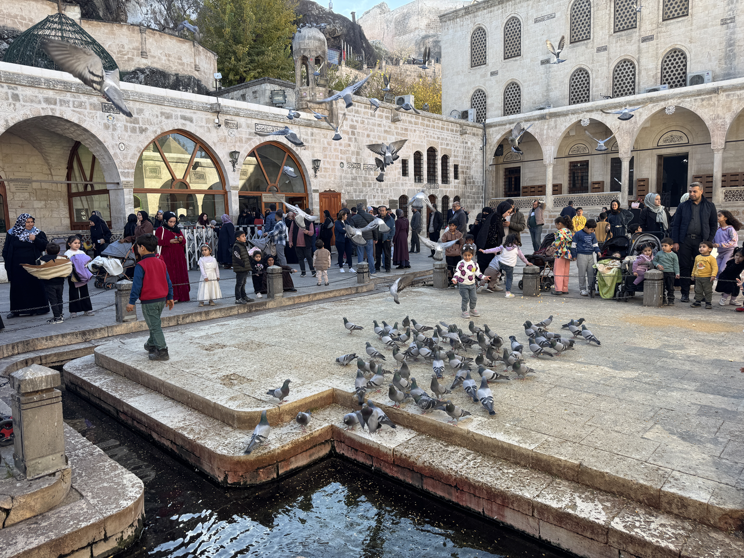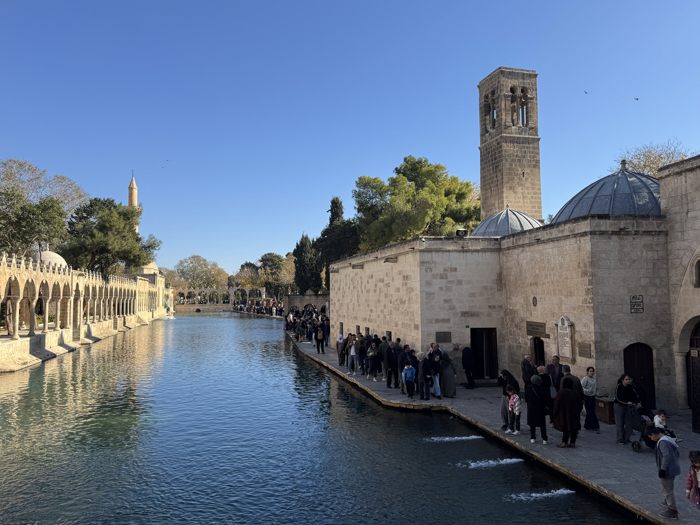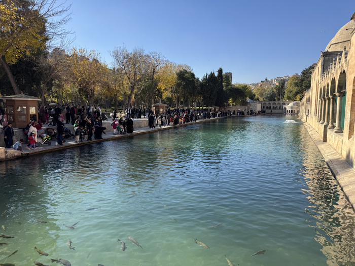 Termometrenin 15 dereceyi gösterdiği Şanlıurfa'da hafta sonu tatilini fırsat bilenler, "dünyanın en büyük doğal akvaryumu" olarak bilinen, inanç turizminde önemli yere sahip tarihi mekanı ziyaret ediyor.