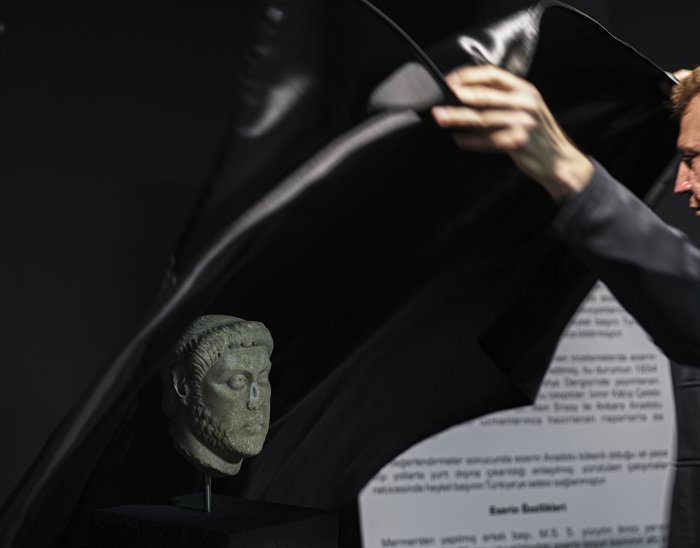 İzmir Arkeoloji Müzesinde Smyrna Antik Kenti kökenli mermer heykel başı sergilenmeye başladı