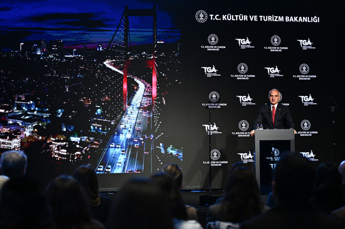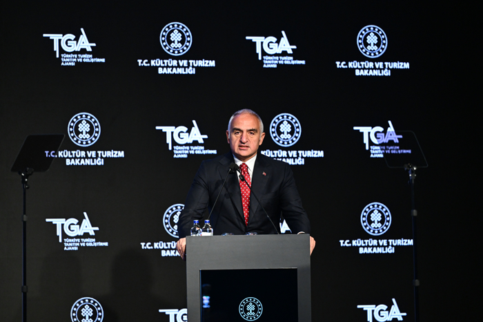 Son zamanlarda başta Türkiye olmak üzere Avrupa'nın birçok yerinde sahne alan Türk dizilerinin tanıtıldığı video gösteriminin ardından konuşan Bakan Ersoy, "Bu büyük dönüşümün tanıtım ayağında yer alan ve 6 yıl önce kurduğumuz Türkiye Turizm Tanıtım ve Geliştirme Ajansı, dinamik yapısı, dijital gücü ve yenilikçi yaklaşımıyla vitrini olmuştur. TGA aracılığıyla 200'e yakın ülkede tanıtım yapıyoruz. Go Türkiye markamız, 10 dilde yayın yapan küresel bir platform haline gelmiştir. İnstagram, YouTube, TikTok başta olmak üzere 9 farklı sosyal medya platformunda 21,3 milyon takipçiye ulaşarak Türkiye'yi dijital tanıtımda zirveye taşıyoruz" ifadelerini kullandı.