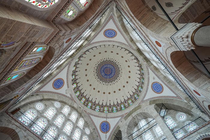 Doğan, Edirnekapı'daki caminin, Üsküdar'daki Mihrimah Sultan Camisi'nden ayrılan en büyük özelliğinin, çok aydınlık ve ferah bir iç atmosferi bulunması olduğunu belirterek, "Bunun en önemli sebeplerinden biri ana kubbenin oturduğu kemerlerin perde duvarlarına açılan çok sayıdaki penceredir. Burada Mimar Sinan'ın önemli bir denemede bulunduğu ifade edilir ve sadece kendi döneminin içerisinde buna Mimar Sinan'ın cesaret edebileceği de kaynaklarda mimarlık tarihi eserlerinde karşımıza çıkar." diye konuştu.