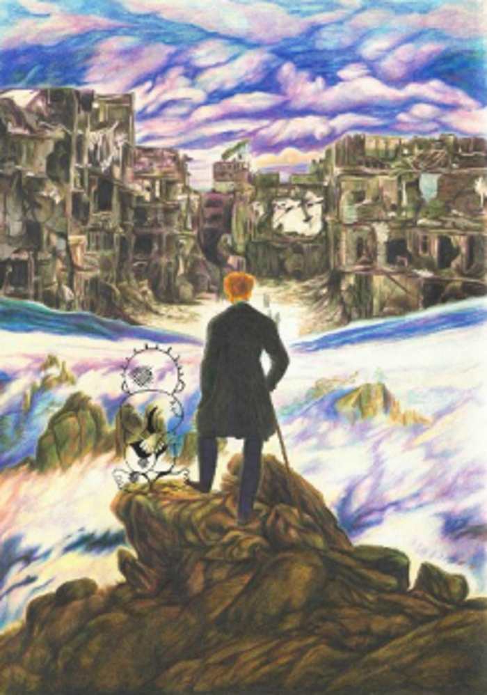 Handala, Fabriano kağıt üzerine toz pastel ve kuru boya, 70x100 cm