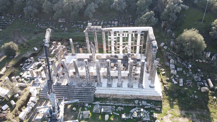 "Antik dönemde kullanılan yöntemlerin yanı sıra modern teknolojiyi de kullanıyoruz. Bu bize önemli ölçüde zaman kazandırıyor. Tapınak bittiğinde hem arkeoloji hem dünya kültür mirasına hem ülkemizin kültür mirasına çok önemli katkılar sağlayacak. Bölgeye gelen turist sayısında önemli bir artış olacak. Öncelikle olarak kuzey cephedeki sütunlar öne doğru eğim yaptığı için onları yerlerinden aldık. Her cephede altyapıyı, temeli sağlamlaştırdık. Temel sağlam olmazsa üst yapının sağlam olması ve olası bir depremde yıkılmaması mümkün değil. Bütün tapınağın sütun sırasını dört cepheden birbirine bağlayacağız. Bu bağlantı sayesinde de tapınak görkemli bir hale gelecek hem de olası bir depreme daha dayanıklı hale gelecek."