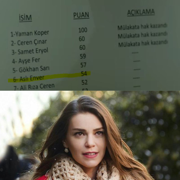 Halen daha İstanbullu Gelin ve Kavak Yelleri dizileriyle anılan Aslı Enver, Medcezir dizisinde de kendisine yer bulmuştu. Sadece dikkatli seyircinin fark edebileceği o sahnede, Enver'in kendisi değil ismi yer almıştı.