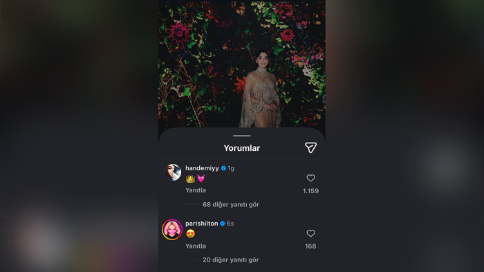 Hande Erçel'in paylaşımına Paris Hilton kalpli emoji ile yorum yaptı.