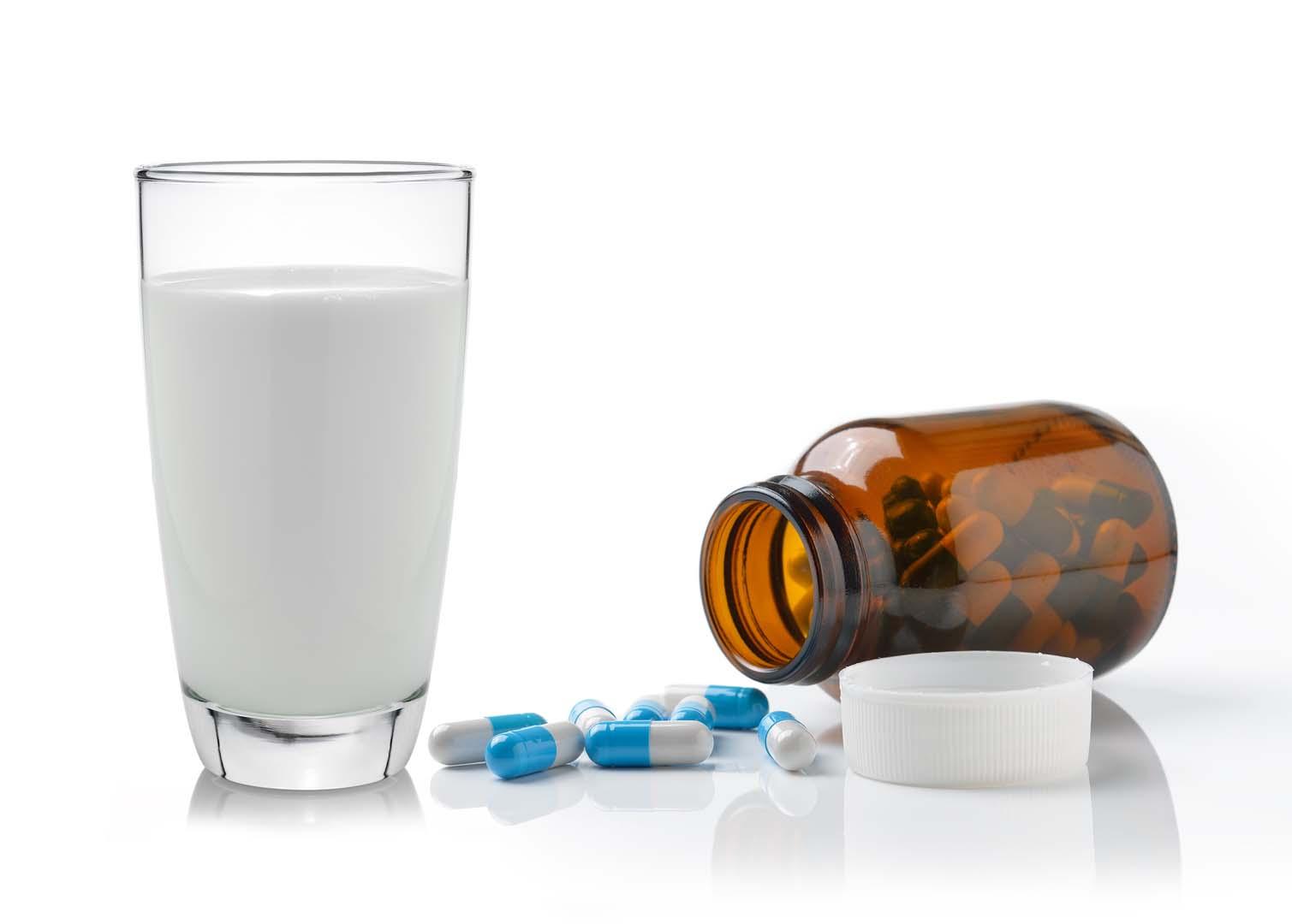 Tetrasiklinler ve florokinolonlar gibi belirli antibiyotikler de süt, tereyağı, yoğurt veya peynir ile alınmamalıdır. Sütün içerdiği kalsiyum, bu antibiyotiklerin moleküllerine bağlanarak vücudun ememeyeceği bir bileşik oluşturur. Bu etkileşim, antibiyotiğin ne kadar iyi çalışacağını önemli ölçüde azaltır ve enfeksiyonun tedavisi başarısız olabilir. Antibiyotikleri su ile almak ve diğer ilaçlar için, ilacı almadan üç saat önce ve sonra süt veya süt ürünlerinden kaçınmak gerekir.