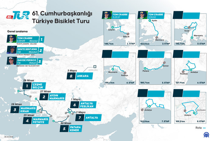 61. Cumhurbaşkanlığı Türkiye Bisiklet Turu'nun (TUR 2026) üçüncü etabını, Equipo Kern Pharma takımından Kolombiyalı Ivan Ramiro Sosa kazandı.