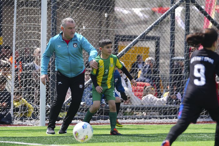 Kurdele kesiminin ardından hatıra fotoğrafı çektiren Bakan Bak, daha sonra çocuklarla halı sahada maç yaptı.