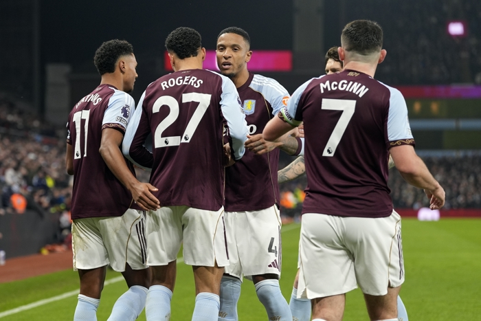 Bizot, Cash, Konsa, Lindelöf, Digne, Bogarde, Tielemans, Guessand, Rogers, Buendía, Watkins.