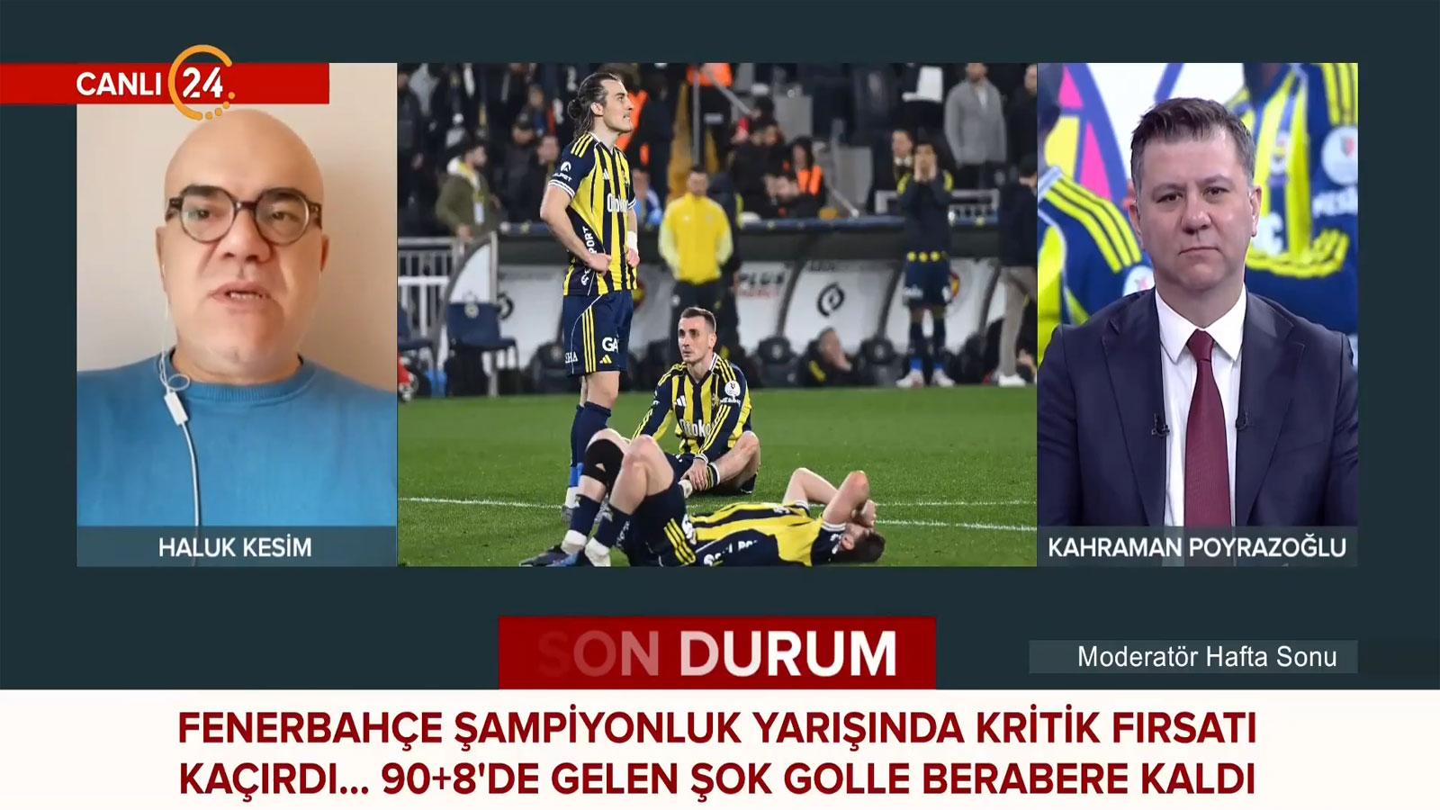 Kadıköy'de oynanan Fenerbahçe-Çaykur Rizespor karşılaşmasında, uzatma dakikalarında gelen gol sarı-lacivertli ekibe ağır bir puan kaybı yaşattı. Haluk Kesim, canlı yayında bu dramatik anları ve tartışmalı faul kararını değerlendirdi.