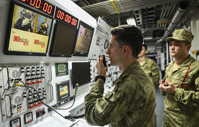 Su üstündeki süpervizörler ise dalgıcı hem başlığındaki hem de aynı mevkiye indirilen su altı cihazı üzerindeki kameradan takip ederek, olası deniz altı araçları veya batık gemilere müdahale konusunda yönlendirdi.