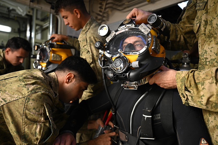 Daha sonra suyun 360 metre altına kadar inebilen Atmosferik Dalış Sistemi (ADS) devreye girdi. Birinci sınıf dalgıç özel ihtisaslı ADS pilotu, astronot kıyafetine benzeyen, suyun altında nefes alabilmesini ve hareket edebilmesi sağlayan kameralı donanımla ekip tarafından suyun altına gönderildi.