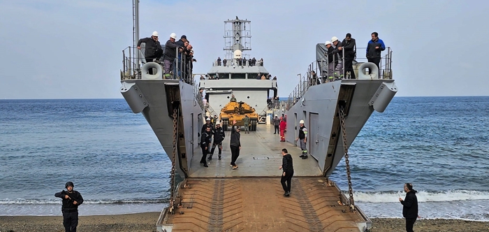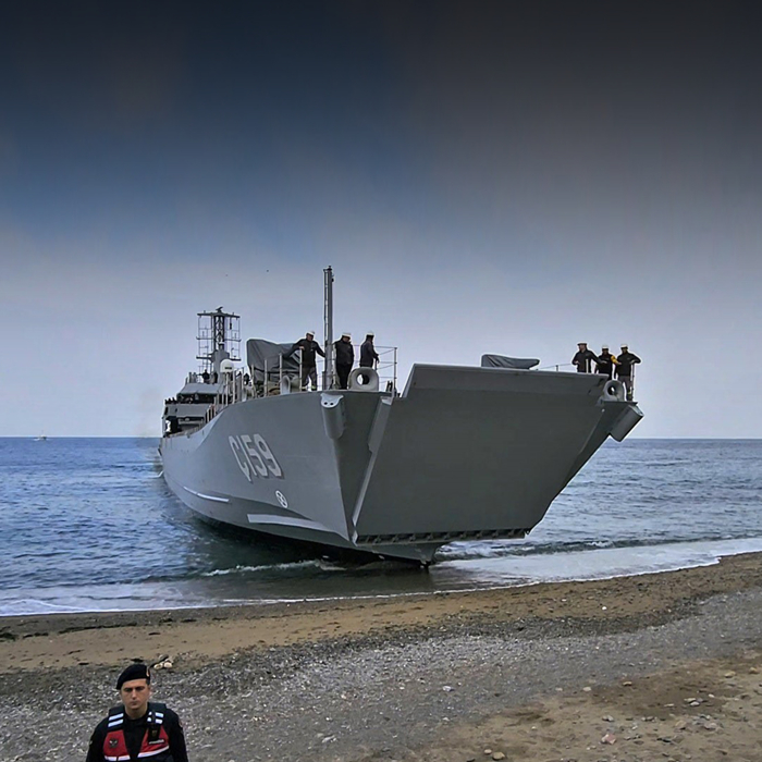 Yeni Tip Çıkarma Gemisi Ç-159, Yalova'nın Çınarcık ilçesine bağlı Esenköy beldesinde test edildi. Sahil Caddesi kıyısına yanaşarak ön rampası indirilen gemiden bir tank çıktı daha sonra ise geri manevra ile gemiye yeniden bindirildi.