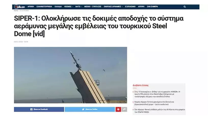 Yunan basınından OnAlert ise SİPER-1'in Çelik Kubbe mimarisine dahil edilmesini "önemli bir dönüm noktası" olarak değerlendirdi.