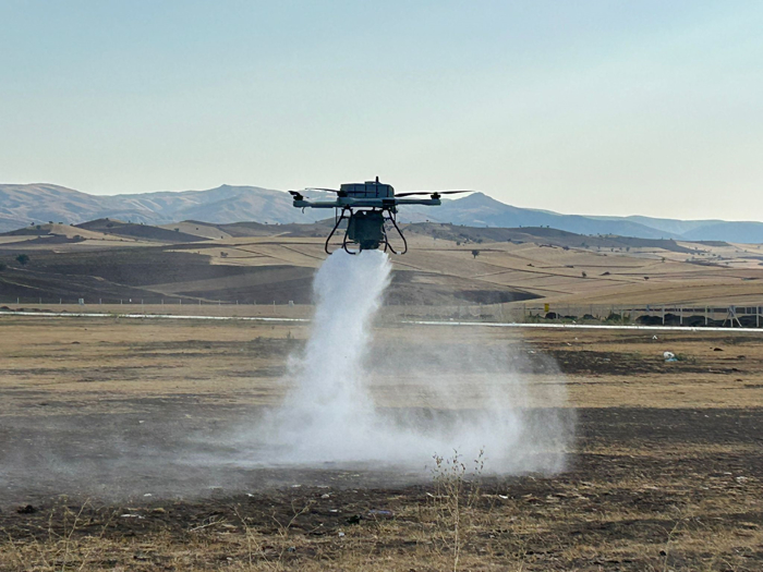 "Bu operasyonları yapabilmek için 2,5 metre yükseklikten uçmak gerekiyor. Özellikle araçların arındırılmasında 1 metreye kadar alçalmaya ihtiyaç bulunuyor. Bu performas değerlerine en fazla tarım dronları yaklaşabilir, ancak onlar da 10 kilometere gidip gelemiyor. Biz standart tarım dronunun 1 metrekareye atabildiği ilaç yoğunluğunun 25 katını atabiliyoruz. Sahada dekontaminasyon için gerekli olan görev konsepti hem ilk hem de tek olmamızı sağlıyor."