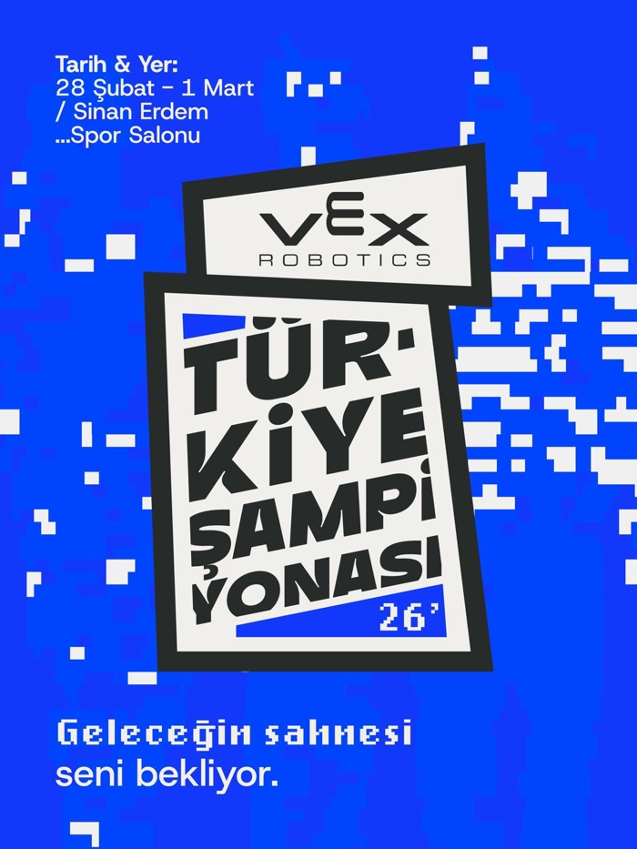 YETEV (Yeni Türkiye Eğitim Vakfı), Intechne ve Educat iş birliğiyle düzenlenen, dünyanın en büyük robotik organizasyonu unvanına sahip VEX Robotics'in Türkiye Şampiyonası, 28 Şubat - 1 Mart 2026 tarihlerinde İstanbul Sinan Erdem Spor Salonu'nda gerçekleştirilecek. Türkiye'nin dört bir yanından gelen 120 robot takımı, Amerika Birleşik Devletleri'nde düzenlenecek Dünya Şampiyonası'na (VEX Worlds) katılabilmek için kıyasıya mücadele edecek.