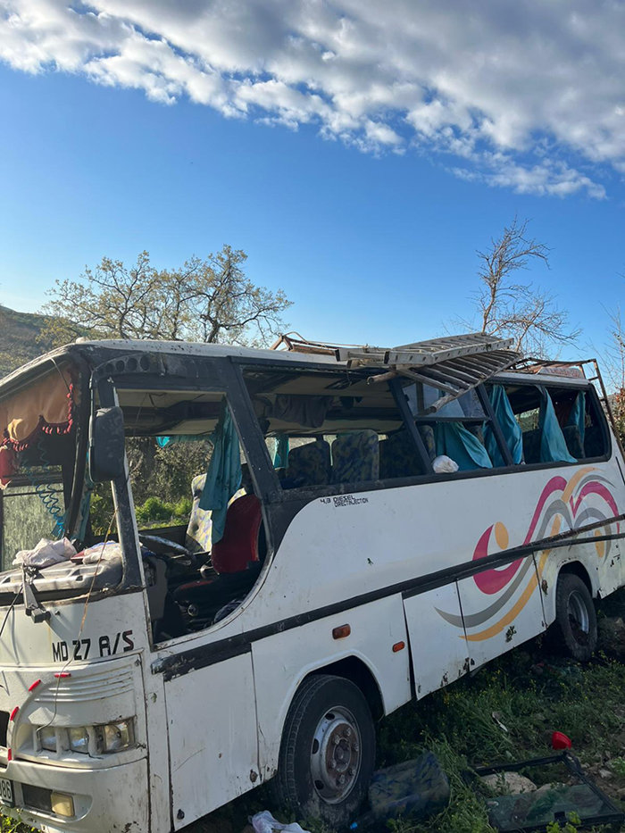 Mustafa E. idaresindeki 80 ADE 086 plakalı tarım işçilerinin bulunduğu midibüs, Eskimantaş Mahallesi'nde devrildi.