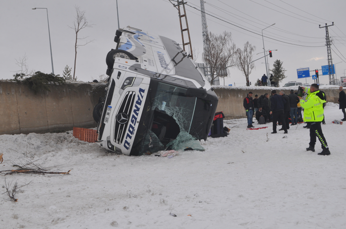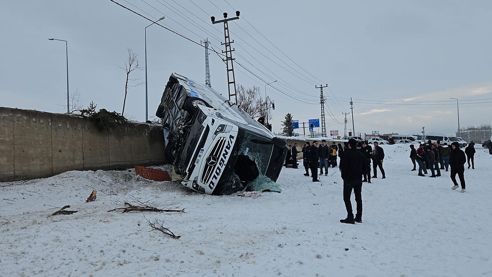 Ağrı'da yolcu otobüsünün devrilmesi sonucu 16 kişi yaralandı