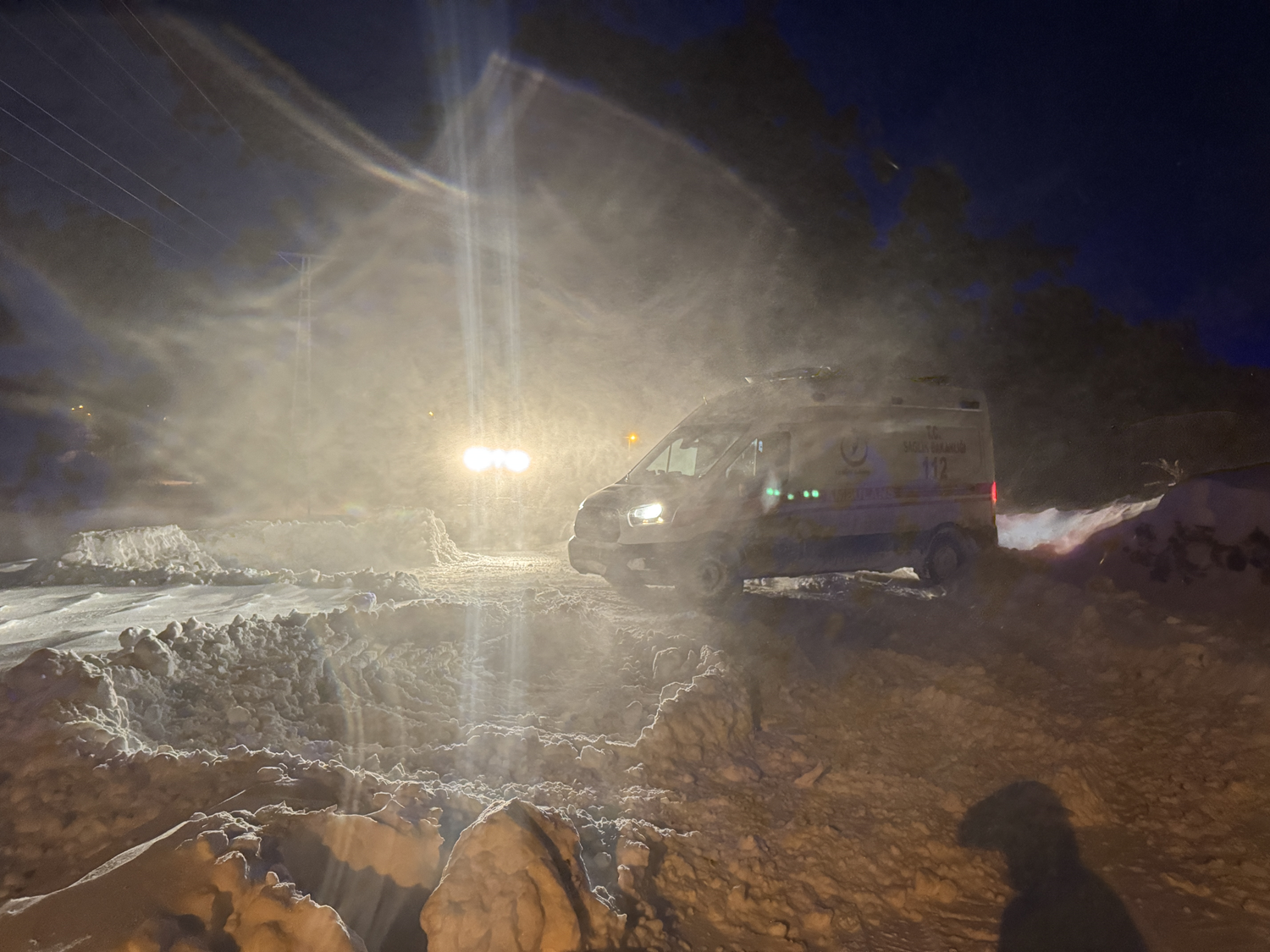 Ağrı'nın Taşlıçay ilçesinde yolu kar ve tipiden kapanan köyde rahatsızlanan KOAH hastası, sağlık ekiplerinin zorlu çalışmasıyla hastaneye götürüldü.