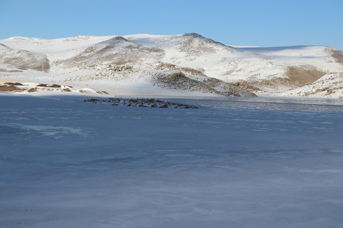Yukarı Toklu köyünün üst tarafında bulunan baraj, dondurucu soğukların etkisiyle buzla kaplandı.