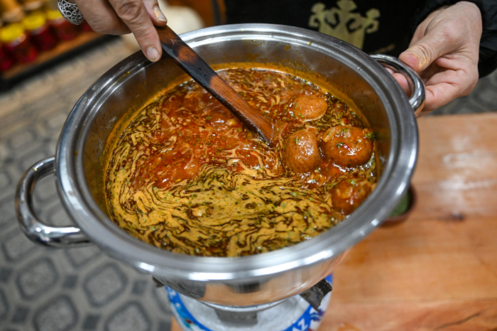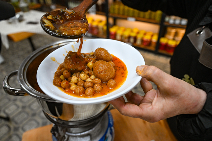 3. Daha sonra su ve haşlanmış nohut eklenerek kaynaması beklenir.