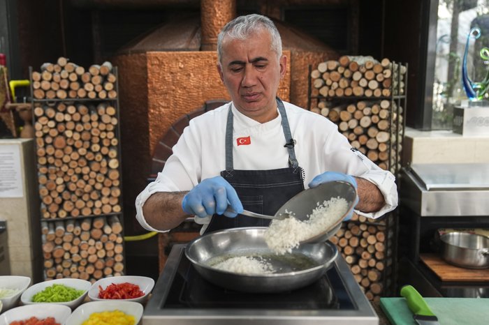 4. Ayrı bir tencerede pirinçler tereyağı ve ayçiçeği yağı ile önce kavrulur, sonra inciklerin bekletilen suyu ilave edilerek pişirilir.