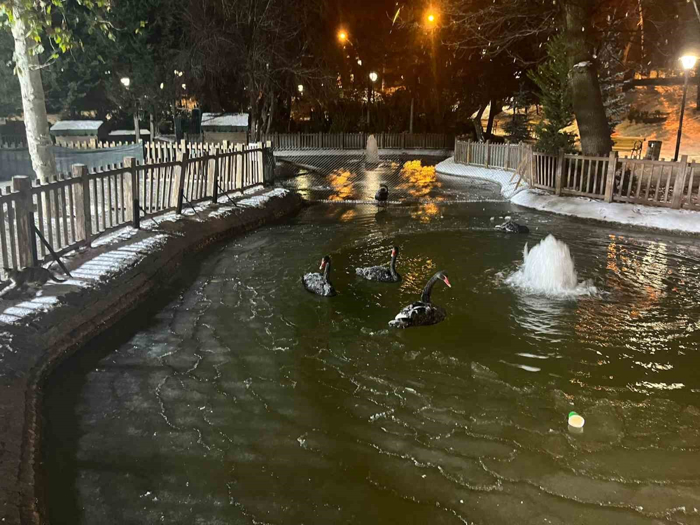 Ankara'da kar yağışının ardından hava sıcaklığı eksi 11 dereceye kadar düştü. Kentin simge noktalarından olan Kuğulu Park'ın havuzunda yer yer donmalar meydana geldi.