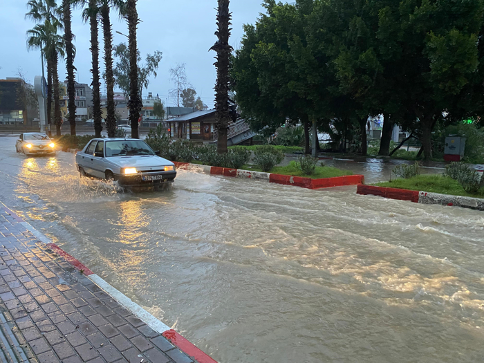 Konyaaltı Sahil Yaşam Parkı'nda da yollarda oluşan göllenme nedeniyle bazı araçlar yoldan geçmekte güçlük çekti, scooterın suya gömüldüğü görüldü.