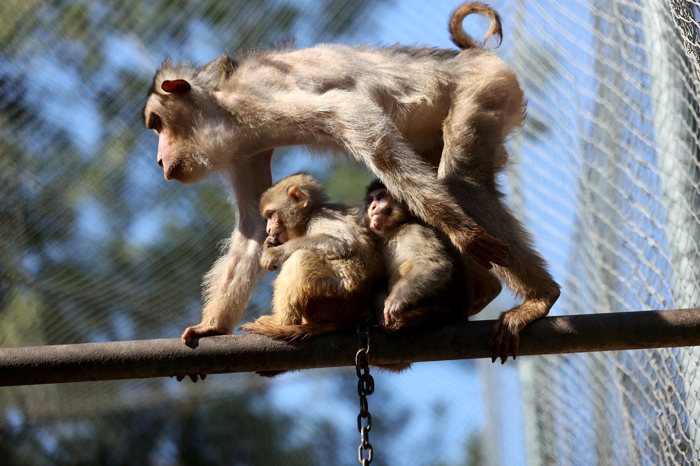 Ziyaretçilerin "yetimler barınağı" adını verdiği kafeste yeni ailesine alıştığı ve yetişkin bireylerin yanından hiç ayrılmadığı gözlenen maymun yavrusu, ziyaretçilerin de ilgi odağı oldu.