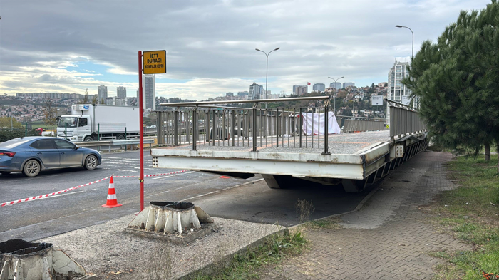 Avcılar'da vincin çarpması sonucu hasar gören üst geçit kaldırıldı