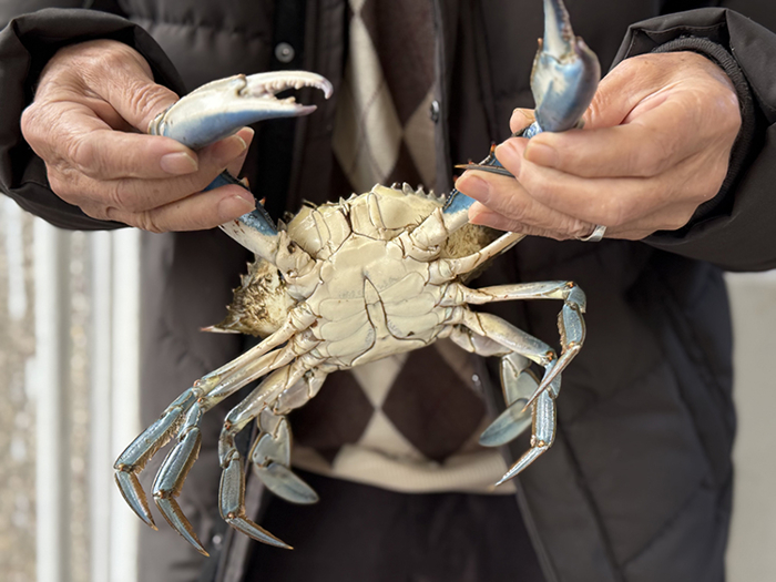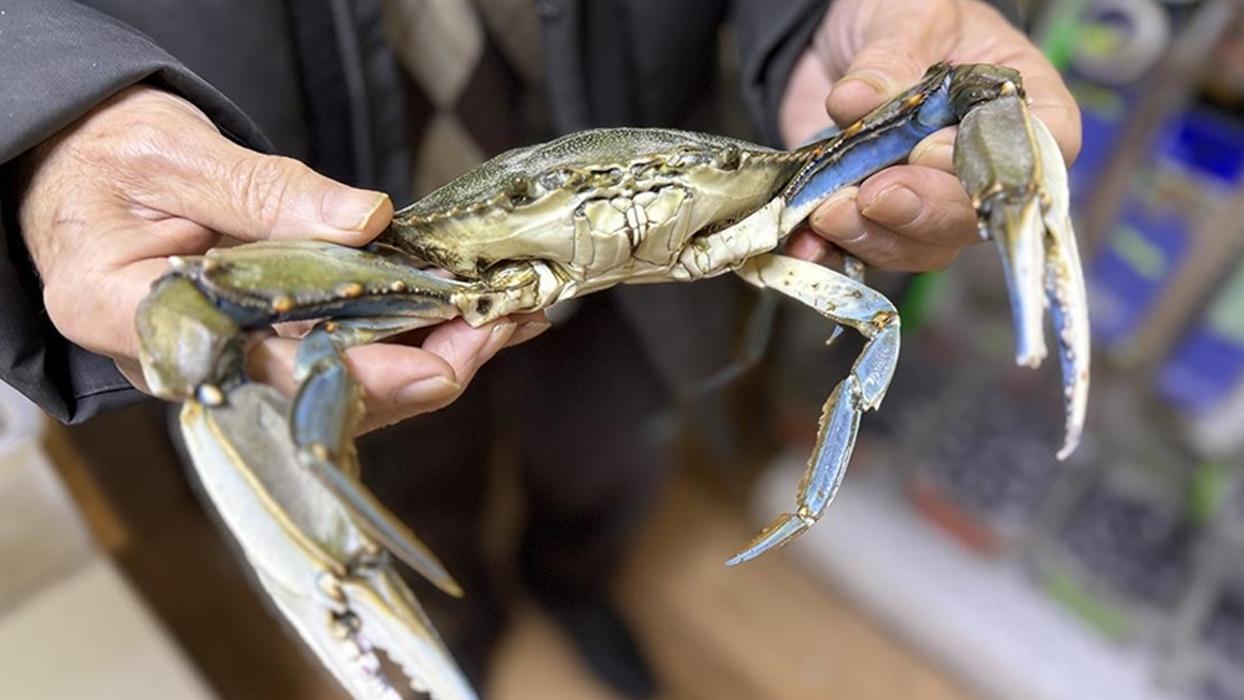 Sinop'ta denize açılan balıkçıların ağına, Karadeniz'de nadir görülen mavi yengeç takıldı.
