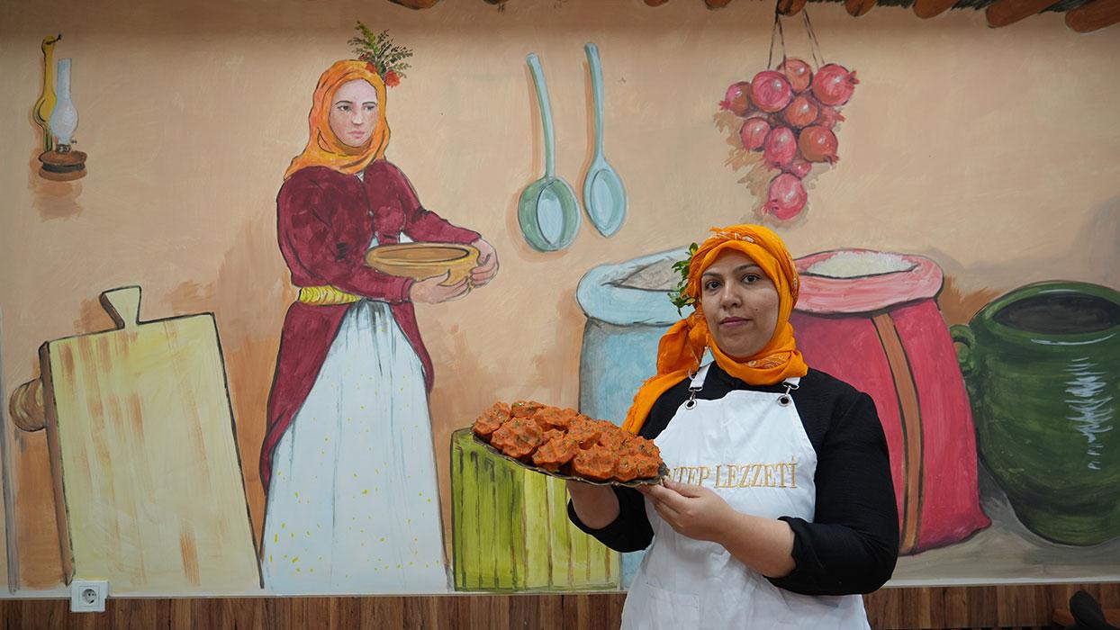Gaziantep'te 4 çocuk annesi Fatma Kalkan, aşçı olan eşine destek amaçlı başladığı restoranda kendi işinin patronu oldu.
