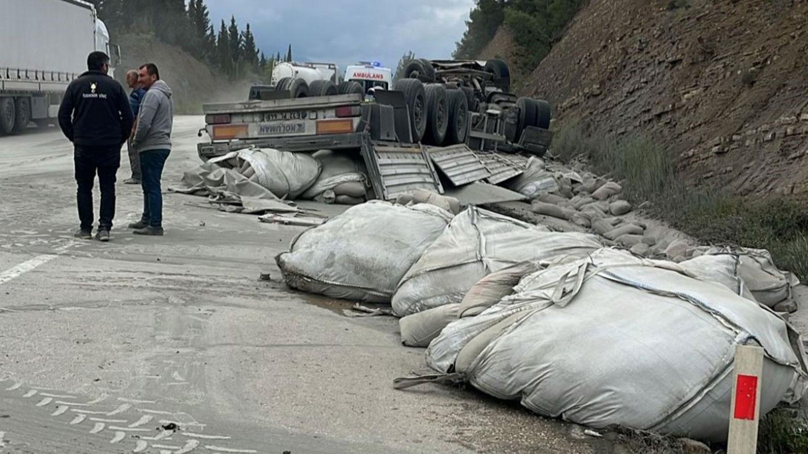 Burdur'da direksiyon hakimiyetini kaybeden tır devrildi: 1 yaralı