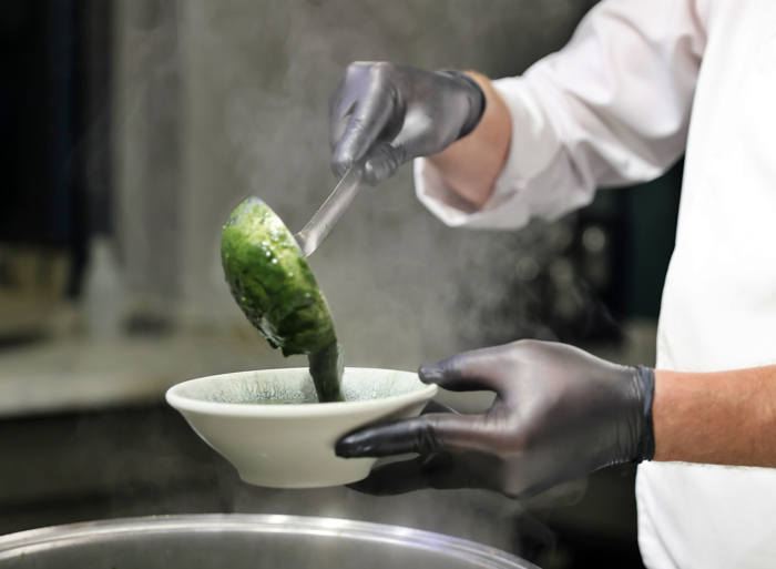 5. Haşlanan ısırgan, blenderden geçirerek püre haline getirilir.