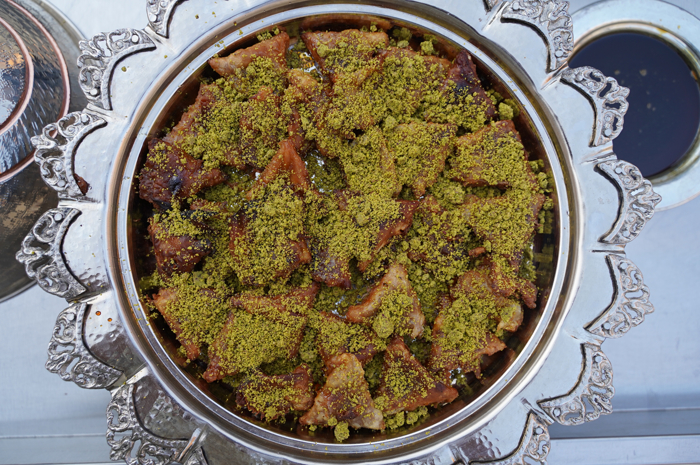 Üzerine şerbet gezdirilip servis edilir.