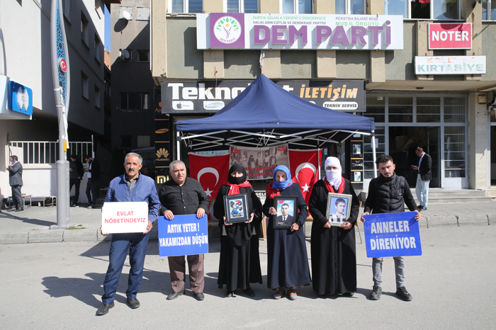 Muş'ta çocukları terör örgütü PKK tarafından kaçırılan aileler, DEM Parti İl Başkanlığı binası önündeki eylemlerine devam etti.