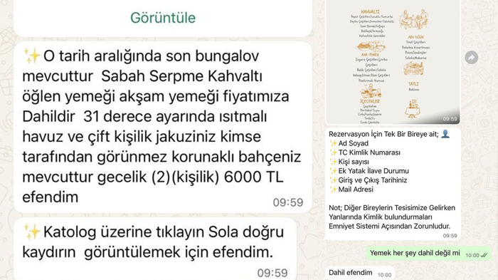 Olay, Antalya'da yaşayan genç bir kadının arkadaşına doğum günü sürprizi yapmak istemesiyle başladı. Hafta sonunu arkadaşıyla birlikte geçirmek isteyen kadın, sosyal medyada gördüğü bungalov ilanı üzerinden iletişime geçti. Hesap yöneticisi tarafından WhatsApp'a yönlendirilen mağdura, tesise ait olduğu belirtilen profesyonel görseller ve konaklama detayları gönderildi.