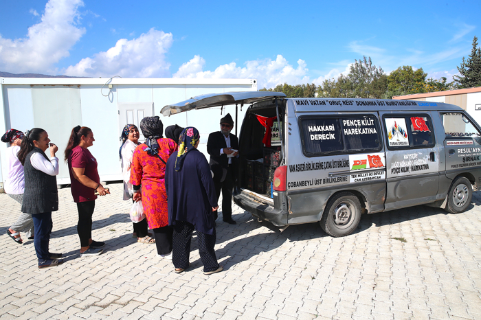 Hataylılarla buluşmak için 1300 kilometre yol katettiğini dile getiren Yılmaz, "En büyük amacım çocukları sevindirmek. Bayram zamanı olsaydı şeker dağıtırdım ama burada hava sıcak olduğu için çocuklara gazoz ikram ettim. Konteynerlere de birer poşet elma dağıttım. 1 ton civarı elmaydı, hepsine yetti hatta arttı." dedi.