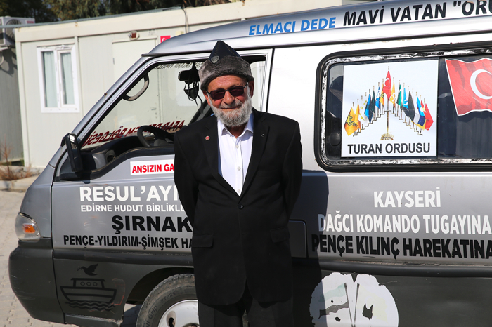 Muhammet Yılmaz, aracını, Türk bayrağı ile Türkiye'nin sınır ötesi operasyonları ve gezdiği yerlerin adlarıyla süslediğini söyledi.