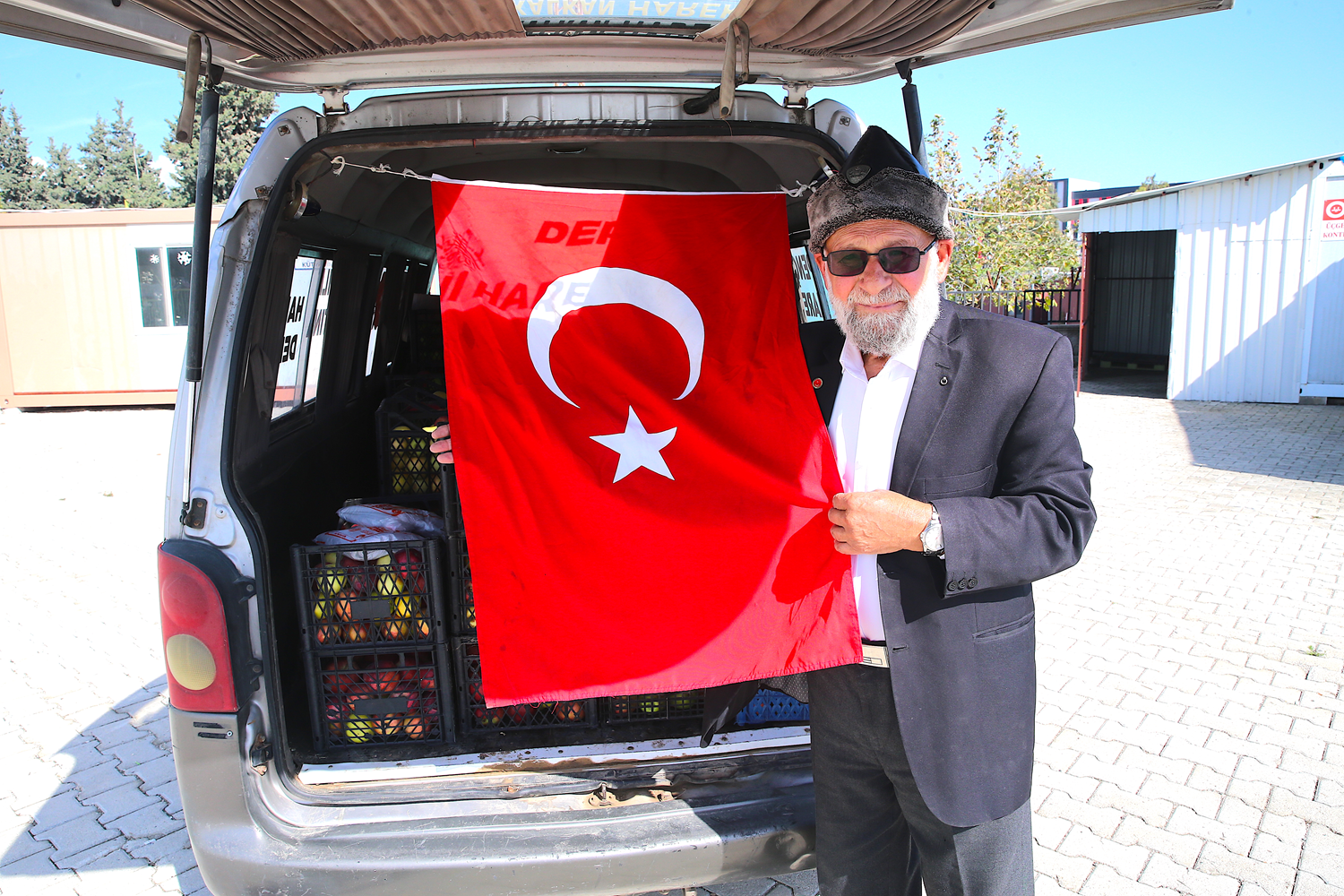 Bahçesinde yetiştirdiği elmaları yurt içi ve yurt dışında operasyonlara katılan askerlere götürmesi dolayısıyla "Elmacı Dede" olarak bilinen Yılmaz, meyvelerini yüklediği aracıyla Hatay'ın merkez Antakya ilçesindeki konteyner kentleri gezdi.