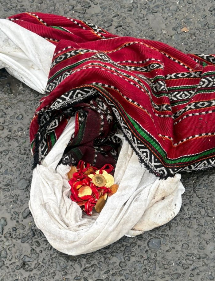 Kepçeler yardımıyla yapılan ayrıştırma işleminin ardından ekipler, Mustafa ile birlikte elle arama gerçekleştirdi. Yoğun çalışmalar sonucunda altınların bulunduğu paketin sarılı olduğu bez parçasına ulaşıldı.