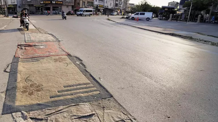 CHP'li belediyelerce alışkanlık haline getirilen kazılan yolun olduğu bırakılıp asfaltlanmaması vatandaşın tepkisini çekmeye devam ediyor. Şimdi de Mersin'de vatandaşlar, bozuk ve tozlu yoldan korunmak için sokaklara halı serdi.