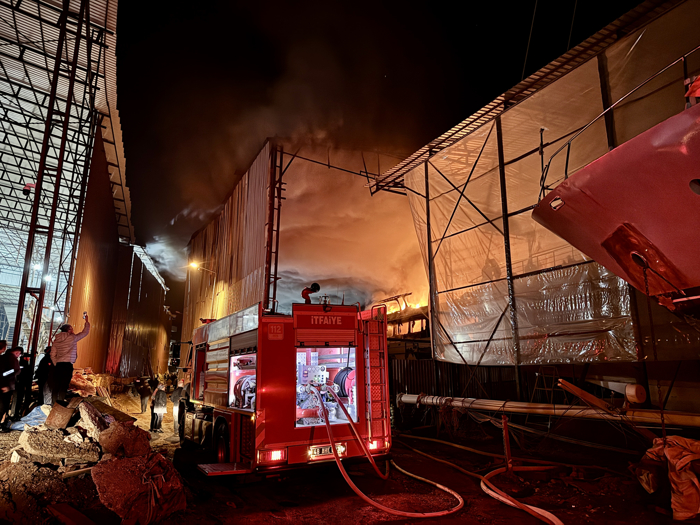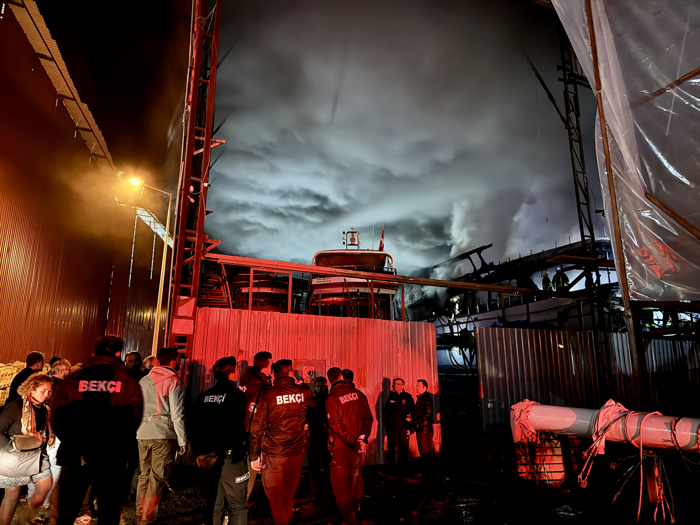Polis ekiplerince tersaneye giden yol, yangın söndürme araçlarının bölgeye kolay ulaşım sağlayabilmesi için bir süre trafiğe kapatıldı.