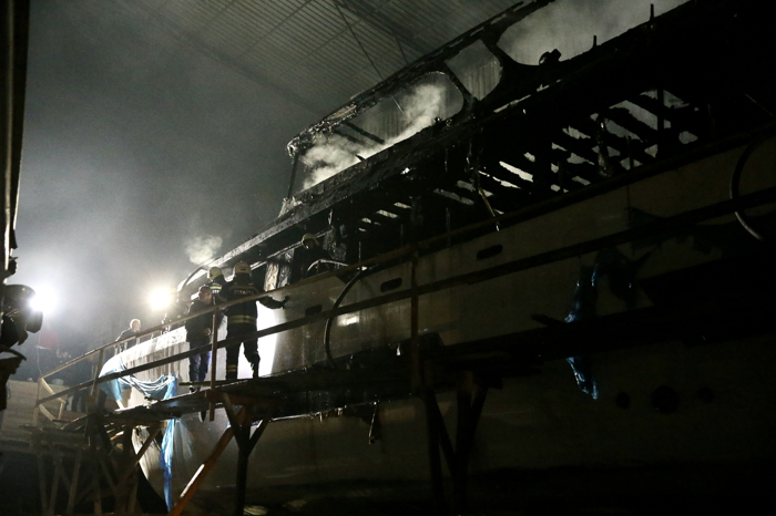 Fethiye'de tersanedeki teknede yangın