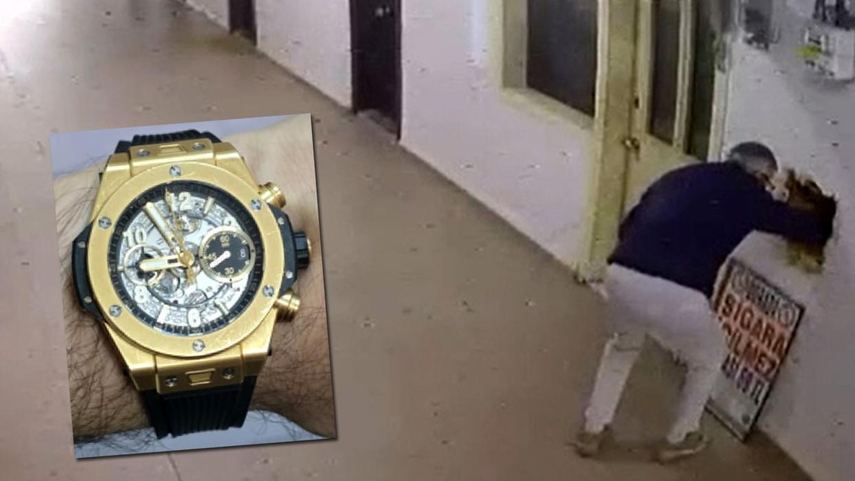 Hırsızlık anı güvenlik kamerası ile kaydedildi. Görüntüde, şüphelinin duvarda asılı "Sigara İçilmez" tabelasını kaldırarak arkasındaki oyuktan kol saatini aldığı, daha sonra tabloyu tekrar asarak uzaklaştığı anlar yer alıyor.