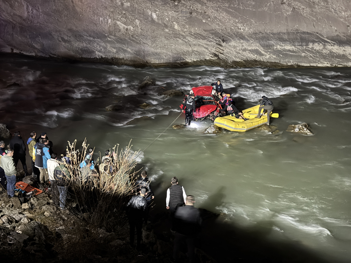Araca ulaşan ekipler, yoğun uğraşlar sonucu durumu ağır olan kadın sürücüyü araçtan çıkararak botla kıyıya getirdi.